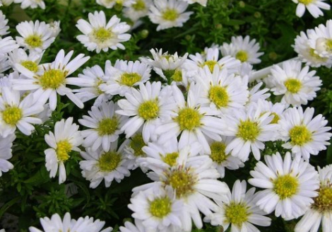 Druh 'Schneekissen' je nízká hvězdnice dorůstající do výšky 25-30 cm. Kvete od srpna do září polštáři bílých květů se žlutým středem. Vypadá jako kopretina a má zelené kopinaté listy.