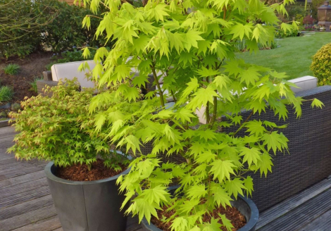 Nádherný japonský javor s kulovitou korunou. Listy mění barvu ze žluté na oranžovou až červenou. Ideální pro menší zahrady. Slunce, polostín a mírně vlhká, propustná půda.