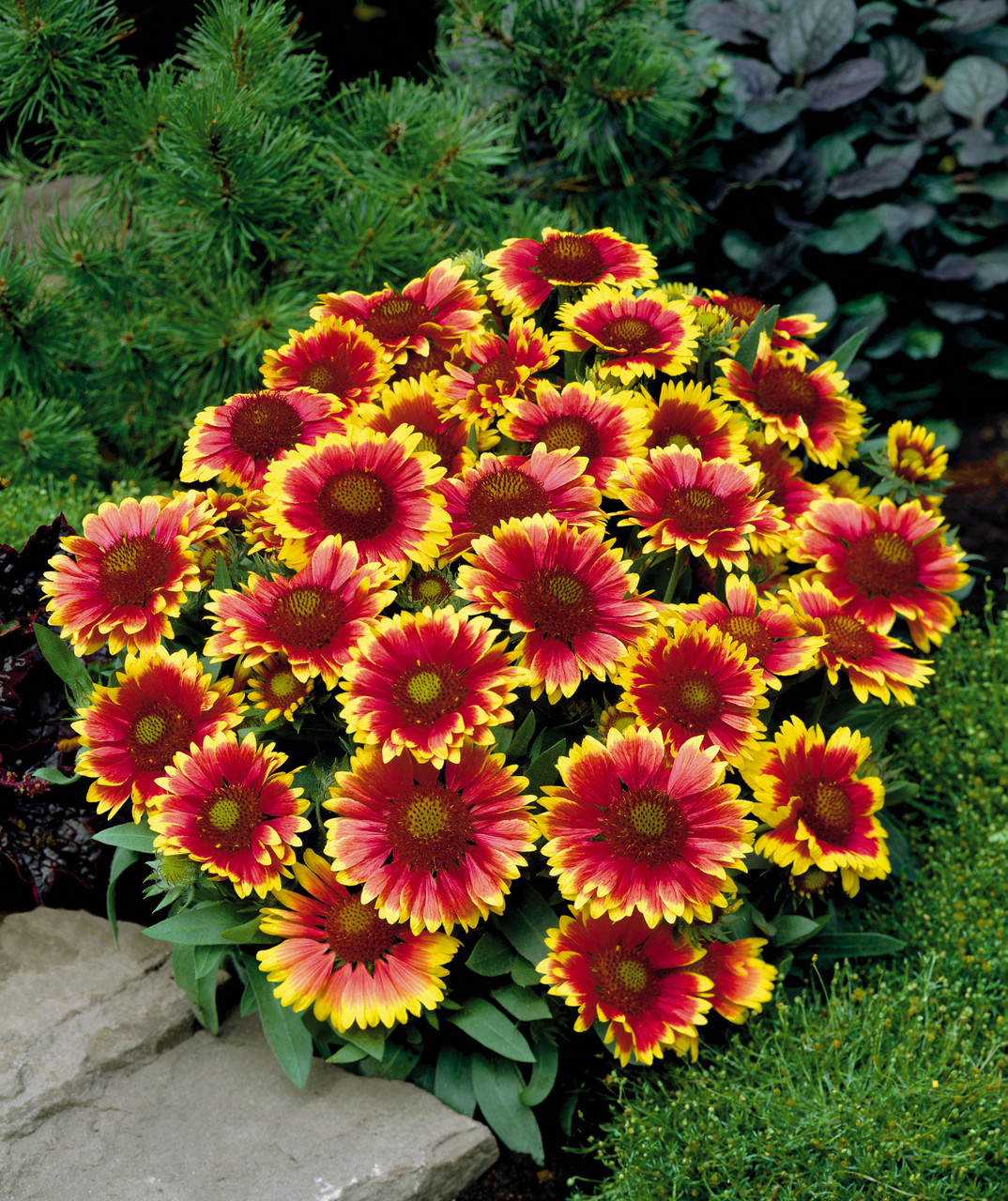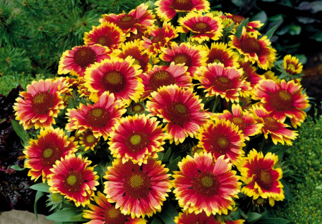Kobold je kříženec ze skupiny velkokvětých kokard, přesto se jedná o velice kompaktní a hustě rostoucí trvalku s krátkými stonky, díky nimž tvoří senzační, pestrobarevné polštáře. Květy této odrůdy jsou ohnivě červené uprostřed a jasně zlatožluté při krajích. Tvar květů je něco mezi kopretinou a gerberou. Listy jsou sivě zelené.