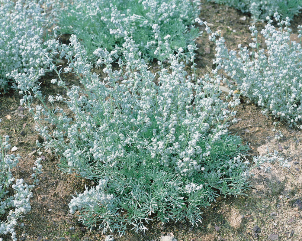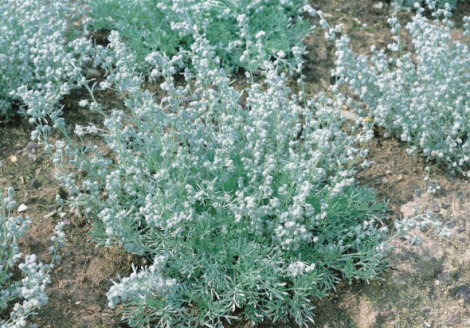 Dorůstá výšky jen do 20 cm a vytváří kompaktní trsy. Má ozdobné stříbřité, jemně dělené listy, které jsou plstnaté. Kvete drobným bílým květem od července do září.